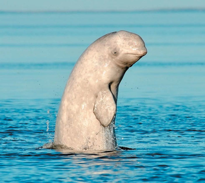 Белуха Delphinapterus leucas (Pallas, 1776), зубатый кит семейства нарваловых. Однотонная окраска кожи меняется с возрастом: новорождённые — синие и тёмно-синие, после года становятся серыми и голубовато-серыми, особи старше 3—5 лет — чисто белые. Спинной плавник отсутствует; отсюда латинское название рода Delphinapterus — «бескрылый дельфин». Белуха распространена между 50° и 80° с. ш. циркумполярно во всех арктических морях, включая Белое и Баренцево. Зимой иногда заходит в Балтийское море. Потомство появляется на свет в весенне-осенний период в местах с более тёплой водой, нередко рядом с устьями рек. Районы, где в весенне-летний период живут самки с детенышами (репродуктивные скопления) установлены в Белом море в акватории Соловецких о-вов [Беликов, Белькович, 2006], в Онежском и Двинском заливах [Лукин, Андрианов, 2013]. Основу рациона составляет стайная рыба (мойва, треска, сайка, сельдь, камбала, сиговые и лососёвые виды). Белуха может стать добычей белого медведя и косатки. В зимнее время белухи, как правило, держатся открытой воды, но иногда заходят в зону ледовых полей, где ветры и течения поддерживают трещины, разводья и полыньи. Исследователи насчитали порядка 50 звуковых сигналов (свист, визг, щебетание, клёкот, скрежет, пронзительный крик, рёв), что породило фразеологизм «реветь белугой [белухой]» [Беликов, 2006]. В 2008 г. в России начата программа изучения вида «Белуха — Белый Кит». С 2010 г. проект поддерживает Русское географическое общество.