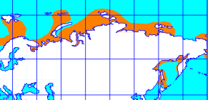 Евразийский сектор ареала белухи / Ареал белухи. [Электронный ресурс]. URL: https://upload.wikimedia.org/wikipedia/commons/thumb/5/53/Cetacea_range_map_Beluga.png/1280px-Cetacea_range_map_Beluga.png (дата обращения: 12.01.2023).\