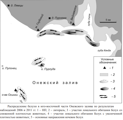 - Распределение белухи в юго-восточной части Онежского залива.