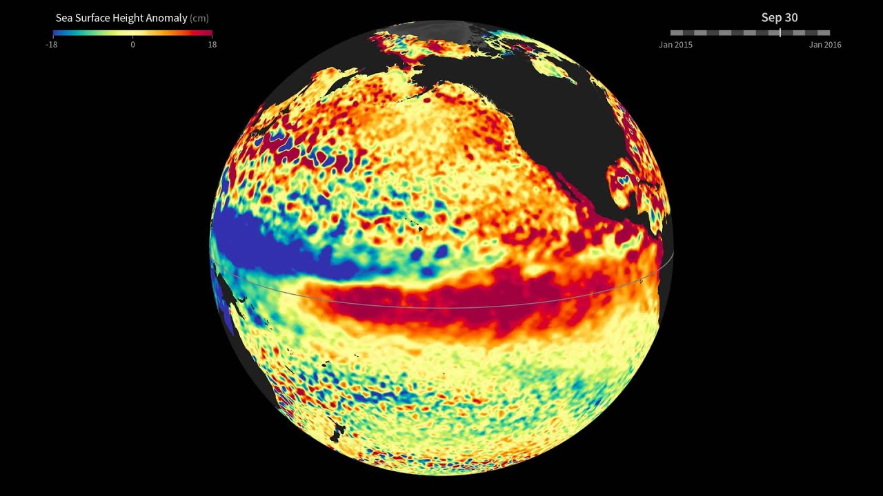 - Положение топографической фронтальной зоны в экваториальной области в период Эль-Ниньо на основе данных аномалий высоты морской поверхности AVISO [Источник: https://sealevel.nasa.gov/resources/80/sea-surface-height-anomaly].