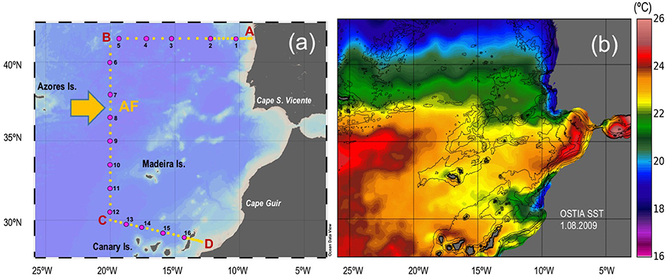 - Термическая фронтальная зона вблизи Гибралтарского пролива по данным реанализа GHRSST OSTIA 1.08.2009 [Shanmugam, 2012].
