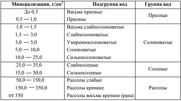 Таблица – Минерализация подземных вод по ОСТ 41-05-263-86 «Воды подземные. Классификация по химическому составу и температуре»