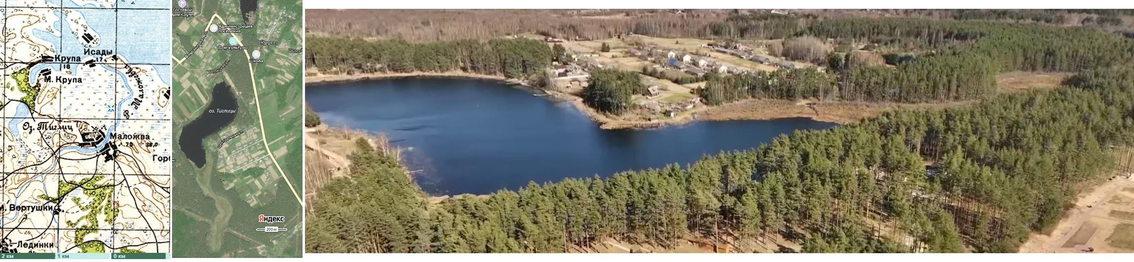 - Ложбина с Тиглицким озером – «родина» Тиглицкой русалки, водяницы. Карта 1941 г. (карта РККА), Яндекс.Карты. Скриншот видео: 1pskov.