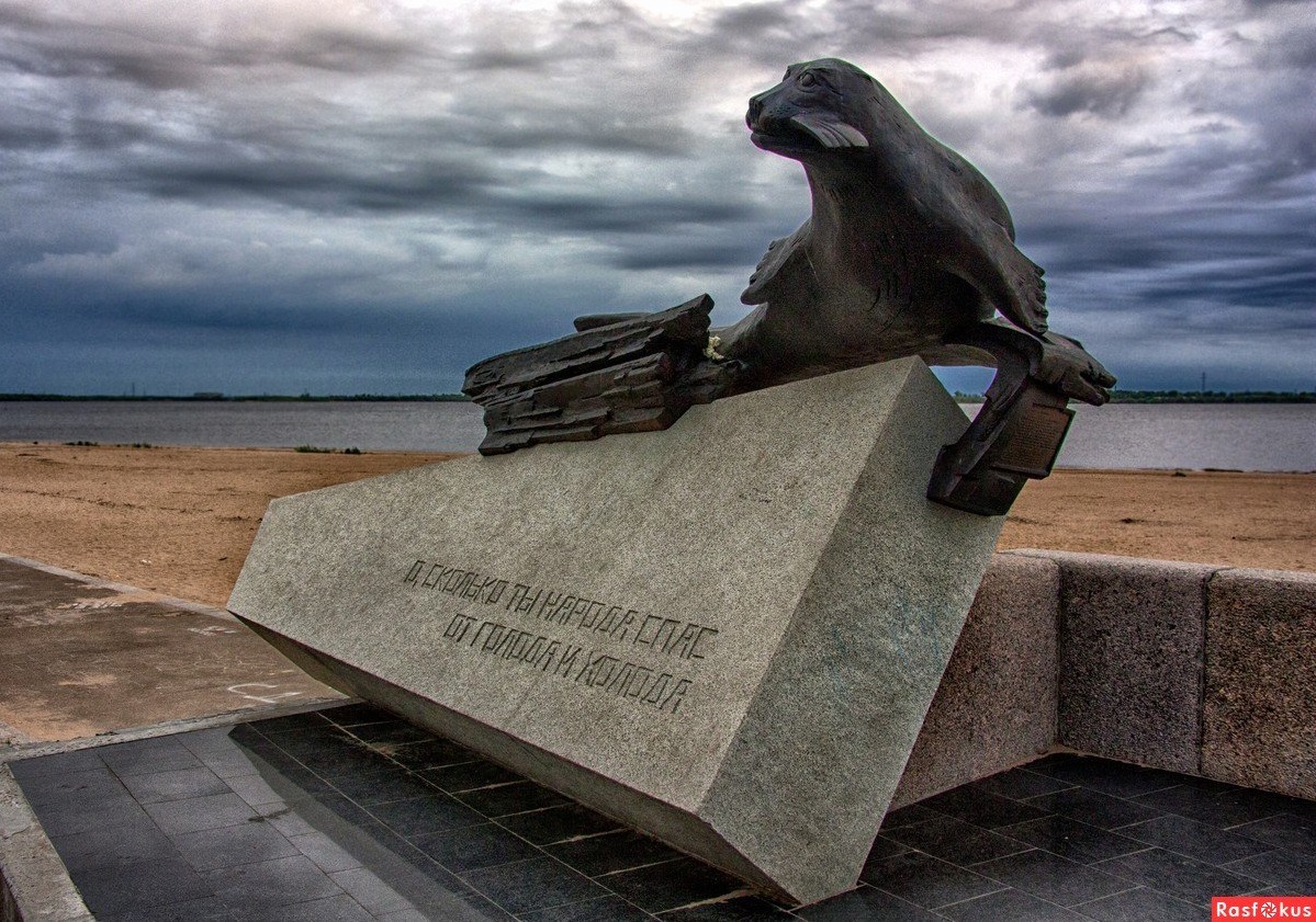 - Памятник тюленю на набережной Северной Двины, г. Архангельск.