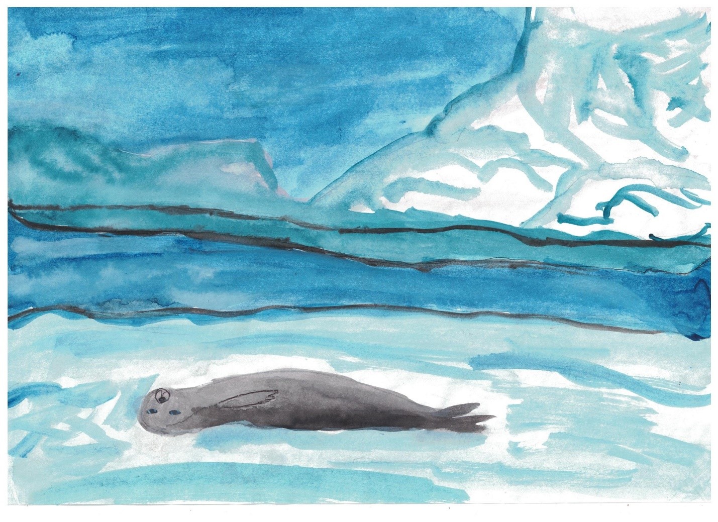 - Отдыхающий тюлень. Кочегарова Виктория, 11 лет, участник конкурса «Водокрас». 152 СОШ, г. Санкт-Петербург.