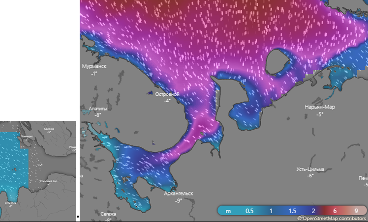 - Высота волн в Финском заливе, Белом и Баренцевом морях по данным погодного радара Windy.com. 23.01.2023.