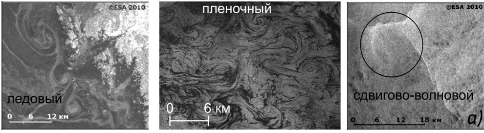 Сдвигово-волновой механизм работает при ветрах до 12 м/с и обусловливается взаимодействием капиллярно-гравитационных волн и сдвиговых течений. Ледовый механизм действует при наличии трассеров в виде льда в воде. В отличие от съемки в оптическом диапазоне, которые также позволяют получить информацию о мгновенном состоянии океана, у радиолокационной съемки есть ряд преимуществ: