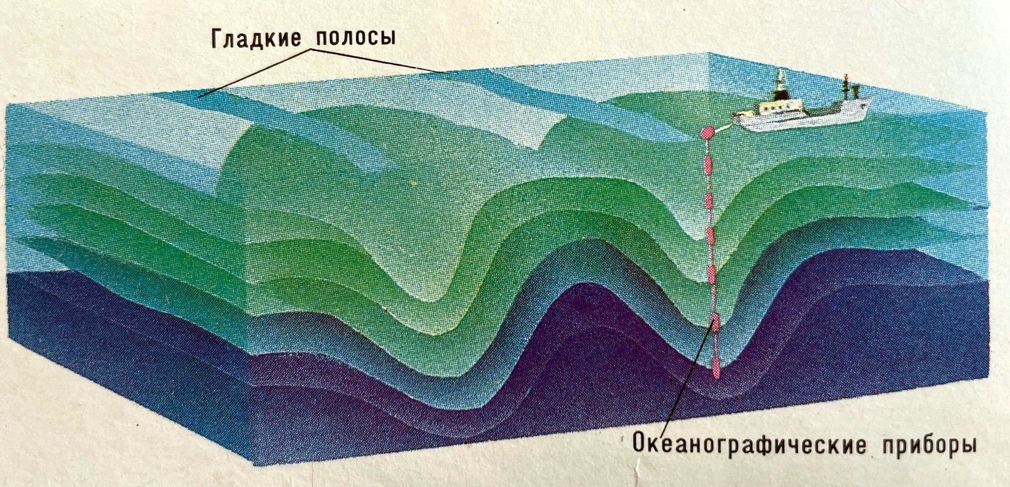 - Схематическое представление внутренних волн в океане [Атлас океанов, 1996].